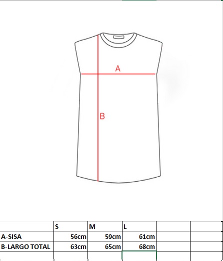 Medida B: Medir desde el borde lateral del cuello hasta abajo de la remera, en linea recta.