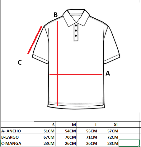Mira nuestra tabla de medidas que esta a continuacion y comparala con la remera que te quede mas comoda! Te recomendamos que para tomar las medidas la apoyes en una mesa.